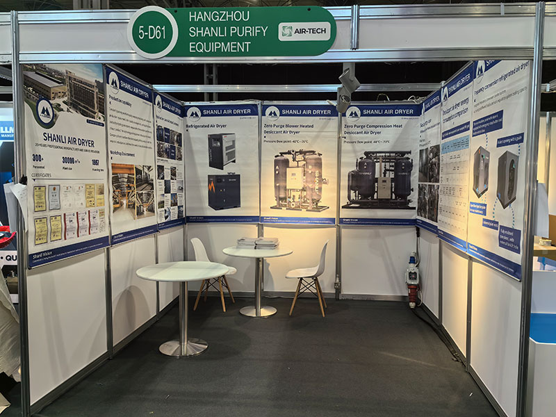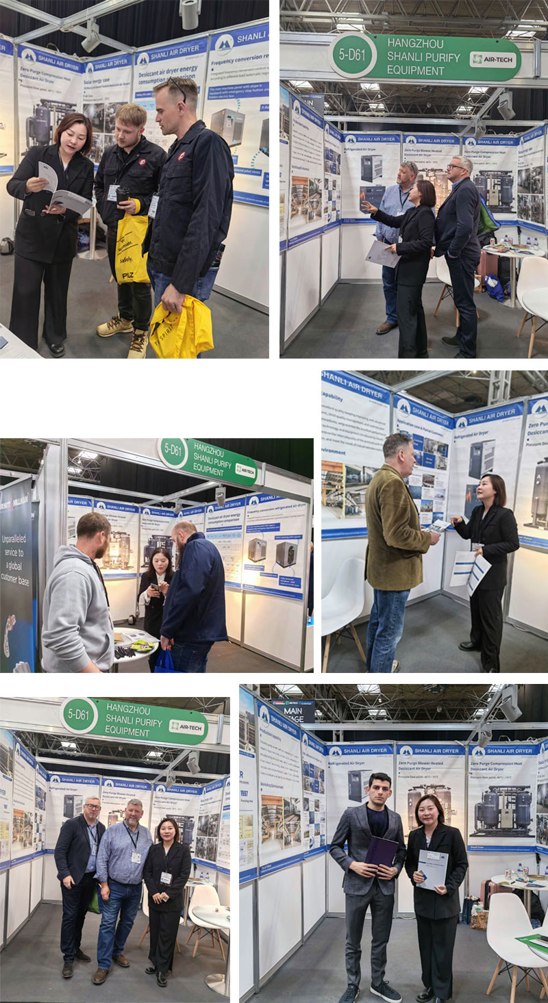 我們的銷(xiāo)售工程師在展會(huì )期間詳細介紹了公司的主流產(chǎn)品:冷凍式干燥機、組合式低露點(diǎn)干燥機、壓縮熱干燥機、鼓風(fēng)熱干燥機等,并且著(zhù)重介紹了山立最新產(chǎn)品:變頻冷干機、零氣耗壓縮熱以及鼓風(fēng)熱再生吸附式壓縮空氣干燥機,深入淺出地講解了產(chǎn)品的創(chuàng )新特點(diǎn)和技術(shù)優(yōu)勢,完美展現了我們在凈化設備領(lǐng)域的專(zhuān)業(yè)水平和研發(fā)實(shí)力。
